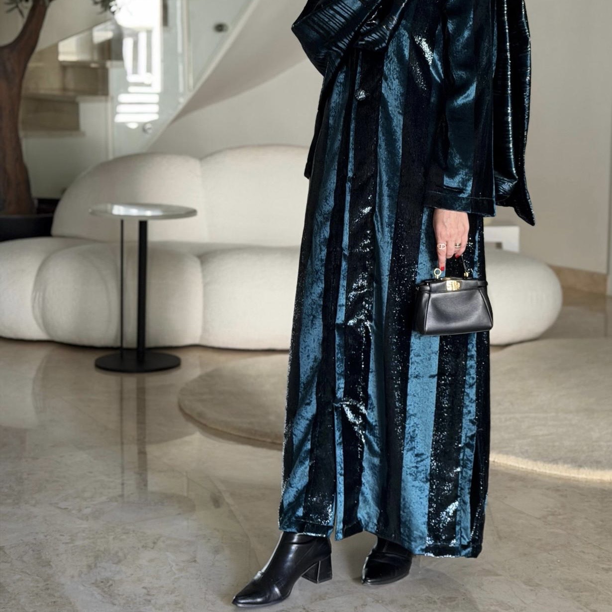 Dark blue color Draa in velvet attached to scarf